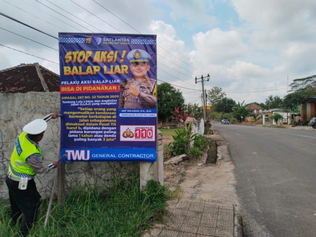 Antisipasi Laka saat Mudik Lebaran, Satlantas Polres Way Kanan Pasang Spanduk Peringatan
