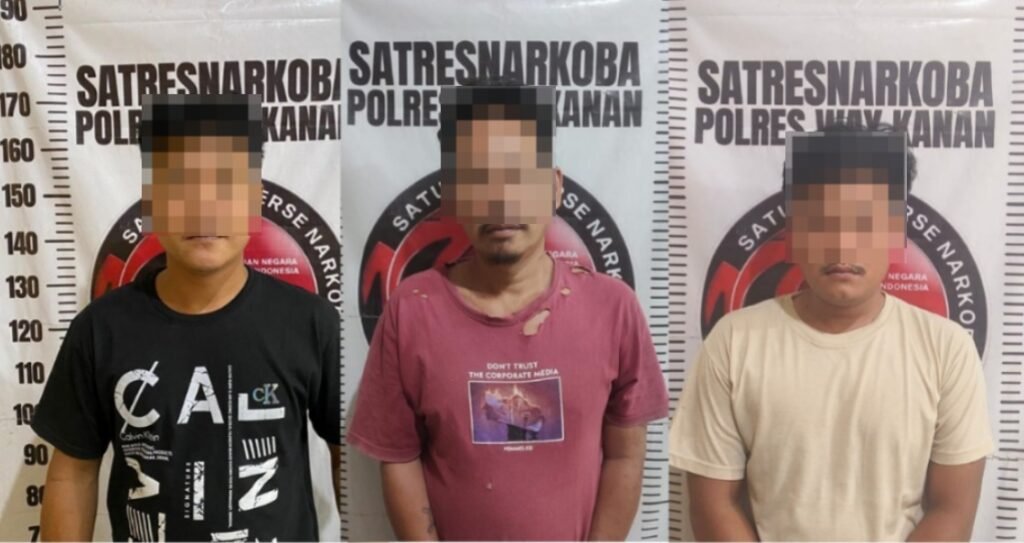 WAYKANAN – LIBAS NEWS7. COM Tiga orang pria asal Umpu Semenguk Kabupaten Way Kanan, diamankan Satresnarkoba Polres Way Kanan diduga terlibat kasus penyalahgunaan narkotika bukan tanaman jenis shabu di Kecamatan Umpu Semenguk Kabupaten Way Kanan. Jum’at (20/3/2026). Terlapor berinisial DG (34) berdomisili Kampung Negeri Batin Kecamatan Umpu Semenguk lalu IR alias Hoya (43) dan…