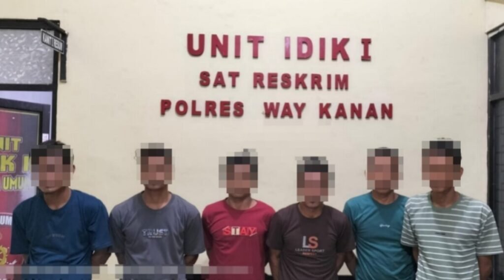 WAYKANAN-LIBAS NEWS7. COM Polres Way Kanan Polda Lampung mengamankan pelaku diduga melakukan tindak pidana Penebangan Pohon dalam Kawasan Hutan secara tidak sah dan setiap orang dengan sengaja memuat, membongkar, mengeluarkan, mengangkut, menguasai, dan atau memiliki hasil penebangan di kawasan Hutan. Enam tersangka yang diamankan berinisial AW (26), JS (37), IW (33), HM (40),…