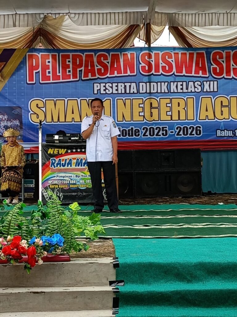 LIBASNEWS7.COM-WAY KANAN, Camat Negeri Agung Hepi Haryanto menghadiri pelepasan siswa-siswi kelas XII SMA Negeri 1 Negeri Agung di halaman SMA Negeri 1 Negeri Agung, Rabu (15/04/2026). Dalam sambutannya, Camat Negeri Agung Hepi Haryanto memberikan motivasi dan pesan kepada siswa-siswi dan orang tua tentang pentingnya pendidikan dan peran siswa-siswi dalam pembangunan masyarakat. “Yang paling utama saya…