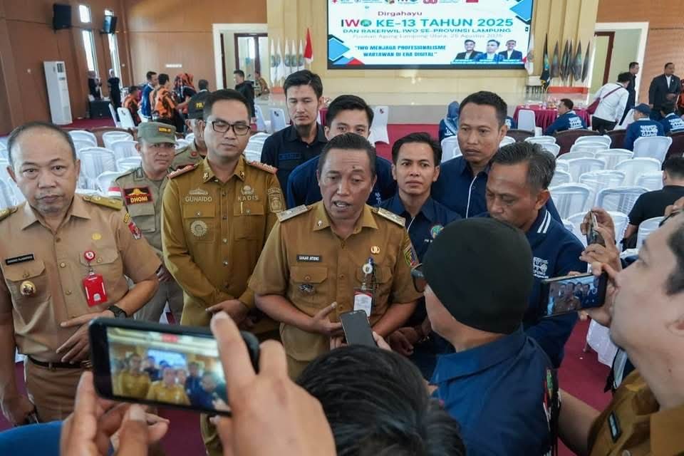 Pemerintah Provinsi Lampung menegaskan dukungan penuh terhadap peran media online sebagai pilar demokrasi. Hal itu disampaikan Gubernur Lampung Rahmat Mirzani Djausal yang diwakili oleh Kepala Dinas Komunikasi, Informatika, dan Statistik, Ganjar Jationo, saat membuka Rapat Kerja Wilayah Ikatan Wartawan Online (IWO) se-Provinsi Lampung di Pusiban Agung Lampung Utara, Senin (25/08/2025).