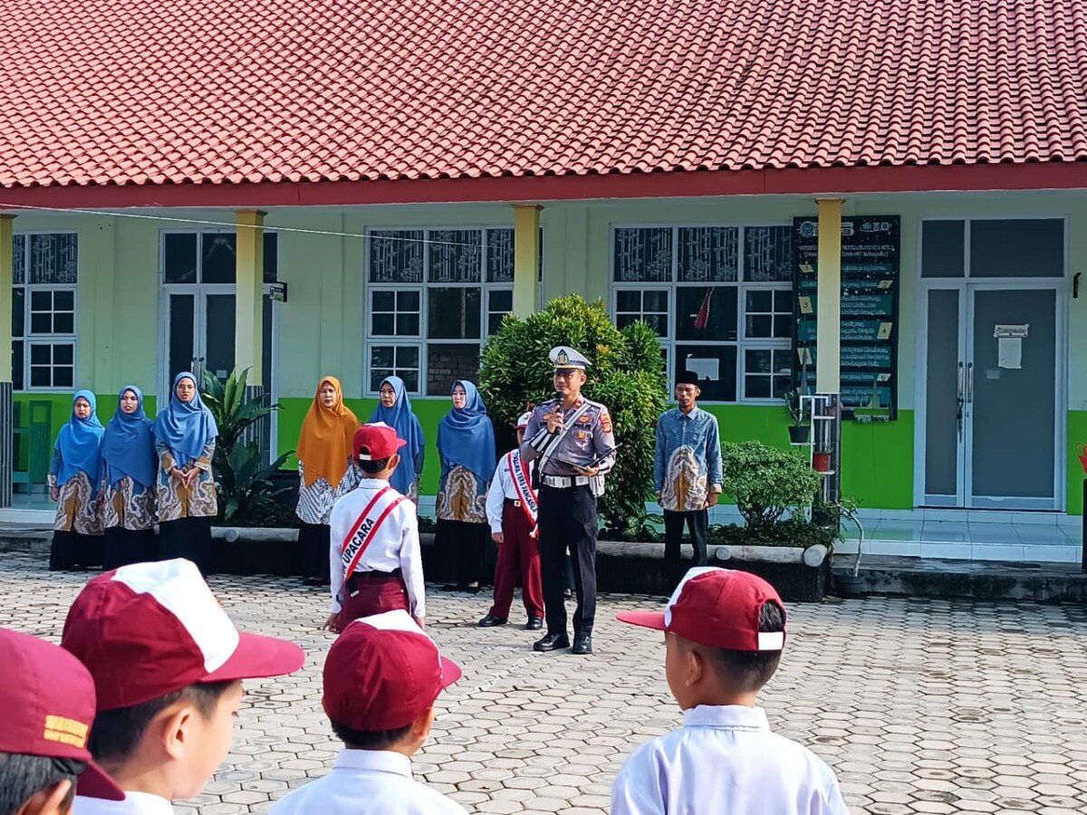 Kehadiran Kanitregident Satlantas Polres Way Kanan Ipda Aprisa Putra Akhiriansa bertindak sebagai pembina upacara bersama personel Satlantas Polres Way Kanan disambut baik oleh Kepala Sekolah, dewan guru dan siswa – siswi SD IT Da’ar Ilmi Kampung Negeri Baru Kecamatan Umpu Semenguk Kabupaten Way Kanan.
