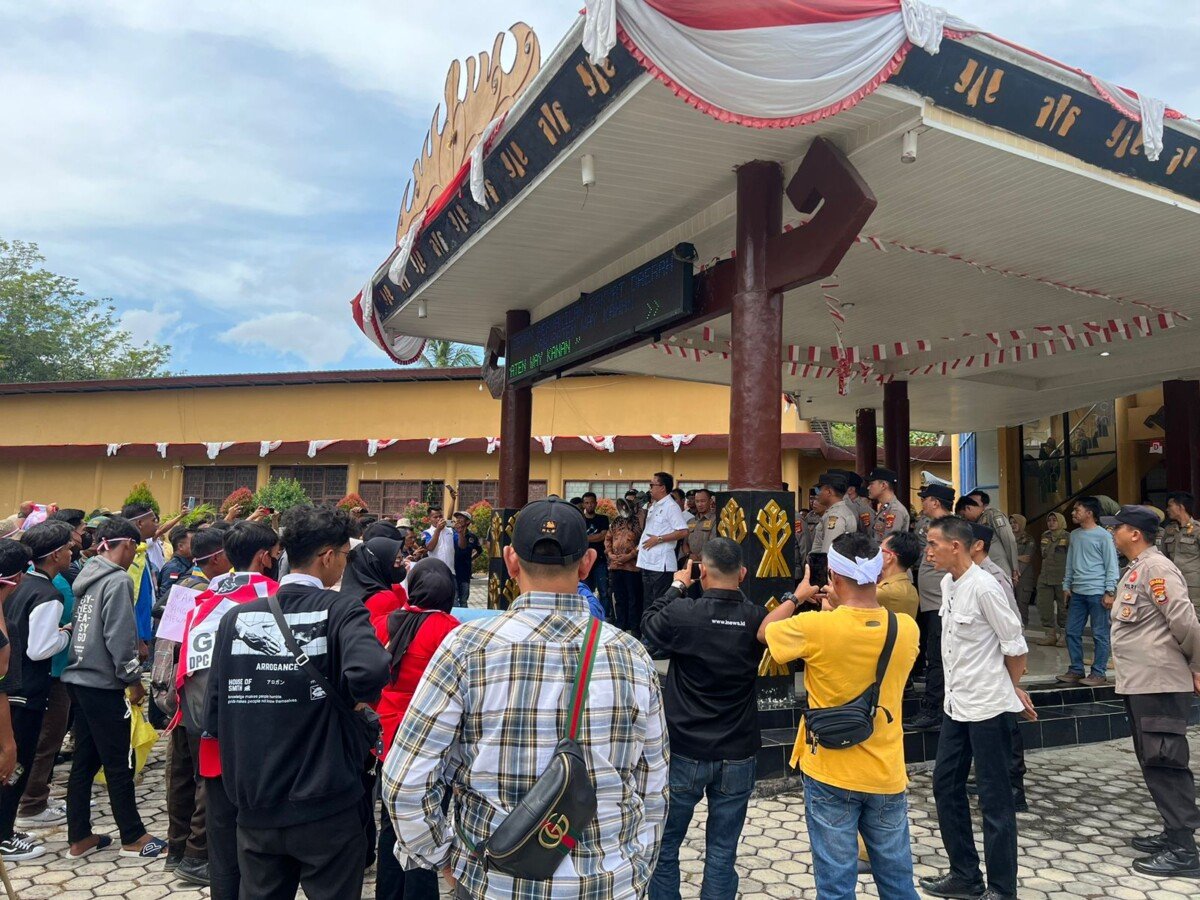 Polres Way Kanan Polda Lampung melaksanakan pengamanan aksi damai oleh mahasiswa di gedung DPRD Kabupaten Way Kanan. Senin (1/9/2025).