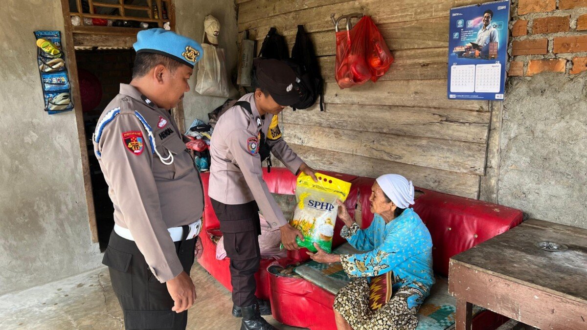 Kapolres Way Kanan AKBP Adanan Mangopang yang diwakilkan Bhabinkamtibmas Polsek Blambangan Umpu mengunjungi sekaligus memberikan bansos (bantuan sosial) beras 5 Kg kepada 50 warga yang kurang mampu. Selasa (2/9/2025).