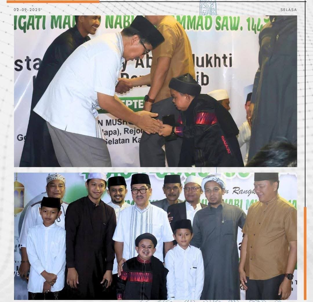 Bupati Lampung Utara, Dr. Ir. Hamartoni Ahadis, M.Si., menghadiri Peringatan Maulid Nabi Muhammad Shallallahu ‘Alaihi Wasallam 1447 H yang dirangkai dengan Gema Sholawat IFQOH Lampung Utara, Selasa (2/9/2025), bertempat di Mushola Al-Hikmah.
