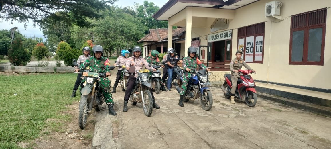 Polsek Kasui bersama dengan jajaran TNI dari Koramil Kasui dan Satpol PP menggelar apel bersama dilanjutkan Patroli gabungan dengan keliling di wilayah Kecamatan Kasui. Rabu (03/09/2025).