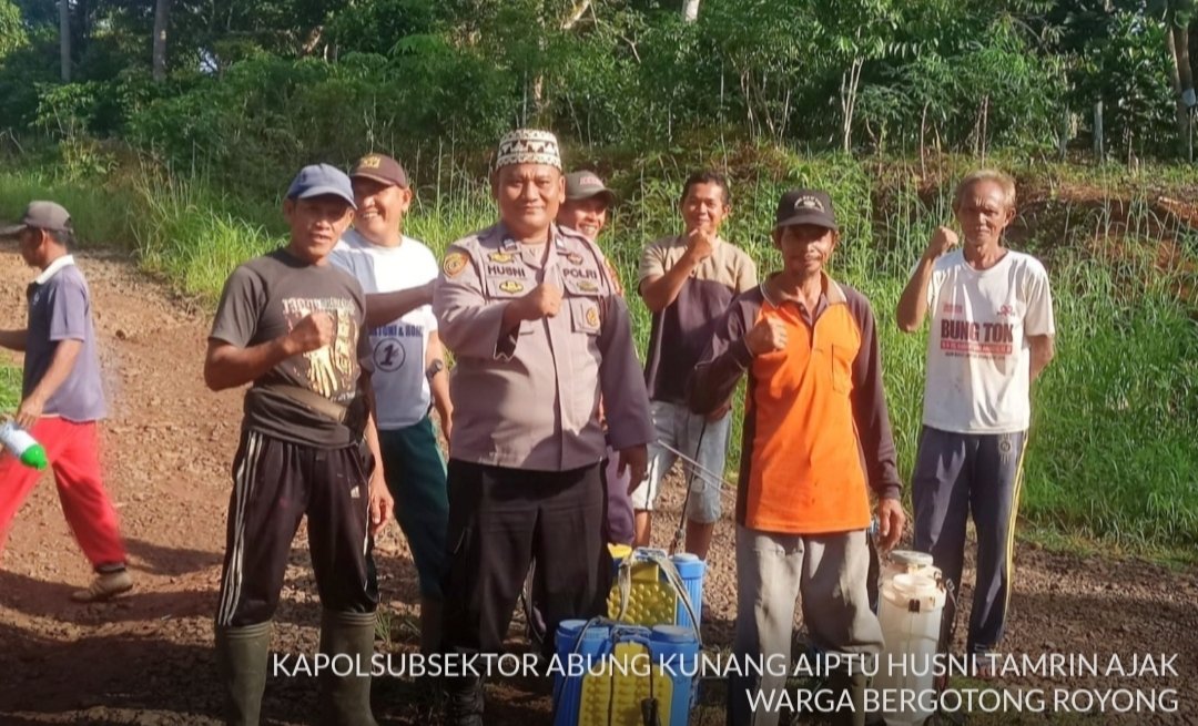 Mengantisipasi terjadinya dampak bencana, Kasubsektor Abung Kunang Polres Lampung Utara ajak warga meningkatkan semangat kebersamaan dengan bergotong royong.
