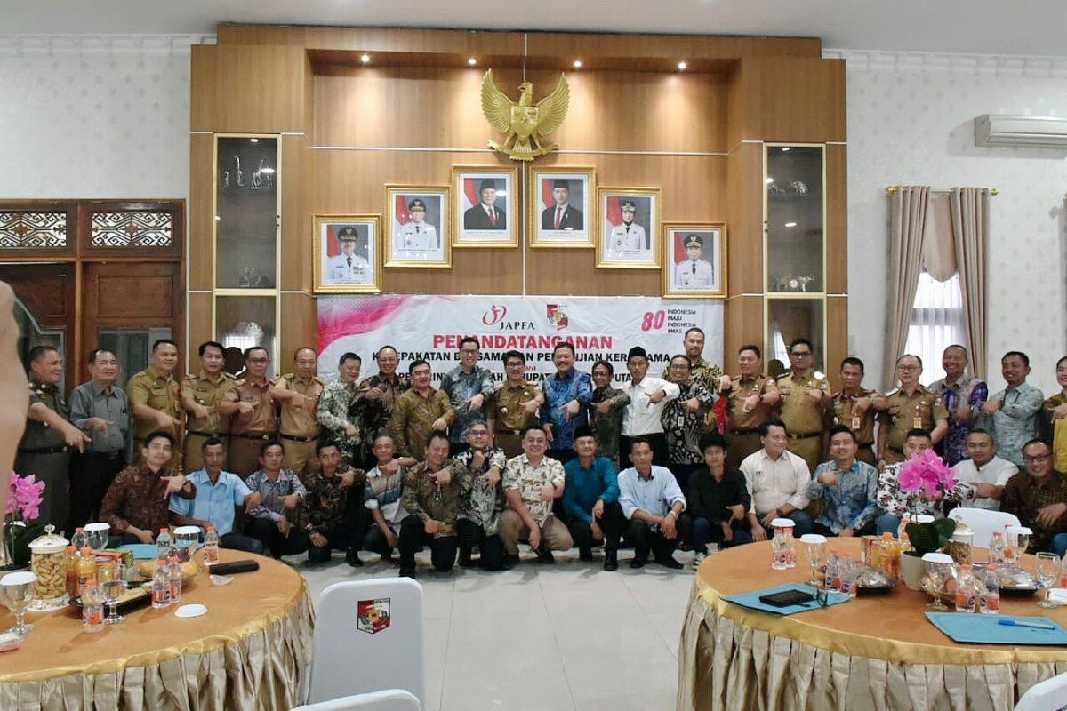 Pemerintah Kabupaten Lampung Utara bersama PT Japfa Comfeed Indonesia Tbk menandatangani Kesepakatan Bersama dan Perjanjian Kerjasama tentang Mitra Bisnis Budidaya Peternakan dan Perikanan, di Rumah Jabatan Bupati Lampung Utara, Selasa 16 September 2025.