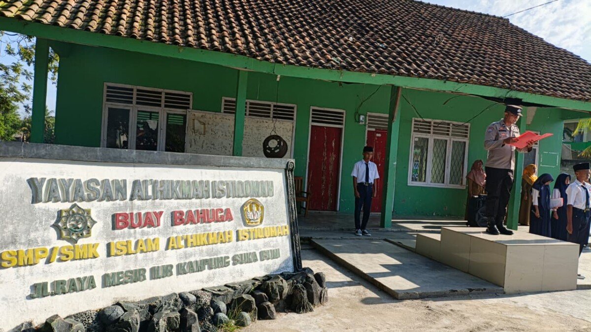 Kanit Binmas Polsek Buay Bahuga Polres Way Kanan Polda Lampung gelar police goes to school di SMK dan SMP Al-Hikmah Istiqomah di Kampung Suka Bumi Kecamatan Buay Bahuga Kabupaten Way Kanan. Rabu (17/09/2025).