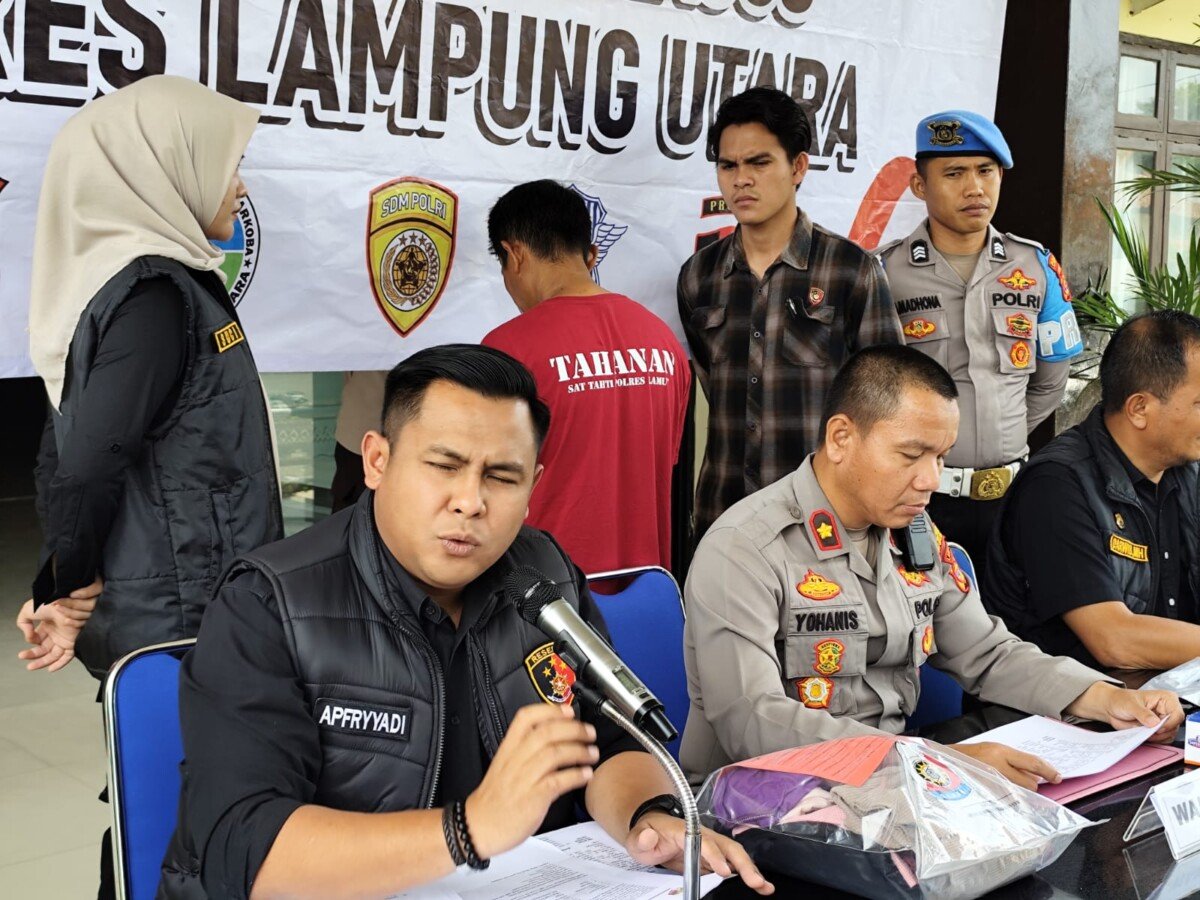 Pengungkap kasus tersebut disampaikan oleh Kapolres Lampung Utara AKBP Deddy Kurniawan melalui Wakapolres Kompol Yohanis saat menggelar Konferensi Pers didampingi Kasat Reskrim AKP Apfryyadi, Kamis (25/9/25).