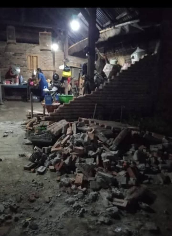 “Kerusakan paling banyak terjadi di bagian atap dan tembok rumah warga. Alhamdulillah tidak ada korban jiwa dalam peristiwa ini,” jelasnya.