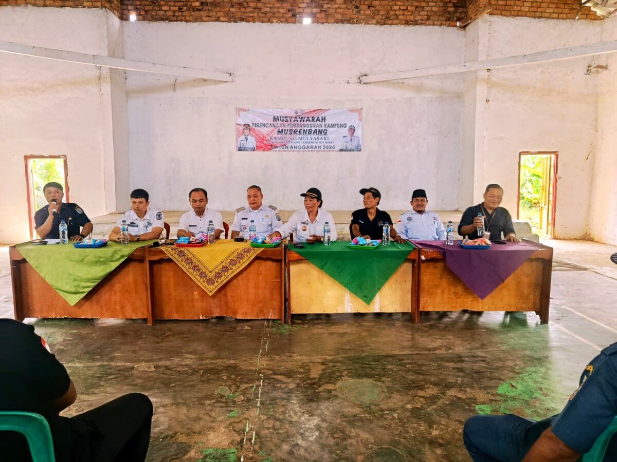 “Tujuan Musrenbangkamp hari ini adalah mengumpulkan usulan dan keinginan masyarakat dari berbagai bidang, seperti infrastruktur, kesehatan, pendidikan, pemberdayaan masyarakat, dan bidang pemerintahan lainnya guna merumuskan apa yang akan kita bangun di tahun 2026 mendatang dengan cara bermusyawarah.”Jelas Nyoman Suwarni Kepala Kampung Mulya Sari