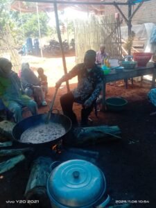 “Kalau di tempat saya biasanya di sebut rewang, “Ujar Camat Negeri Agung sambil membantu mengaduk dodol atau jenang.(Alba)