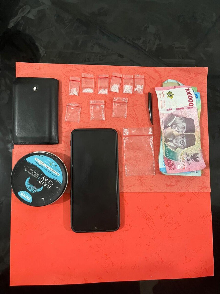 Dari tangan tersangka, petugas mengamankan enam paket narkotika jenis sabu, plastik klip berbagai ukuran, alat takar sabu, satu kaleng minyak rambut, serta satu unit handphone yang diduga digunakan untuk transaksi.