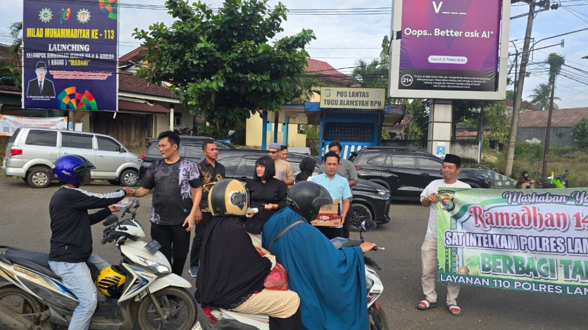 Dalam semangat berbagi di bulan suci Ramadhan, jajaran Satuan Intelkam Polres Lampung Utara menggelar kegiatan pembagian takjil kepada para pengendara yang melintas di Bundaran Tugu Alamsyah RPN Kotabumi, Sabtu (28/2/2026).