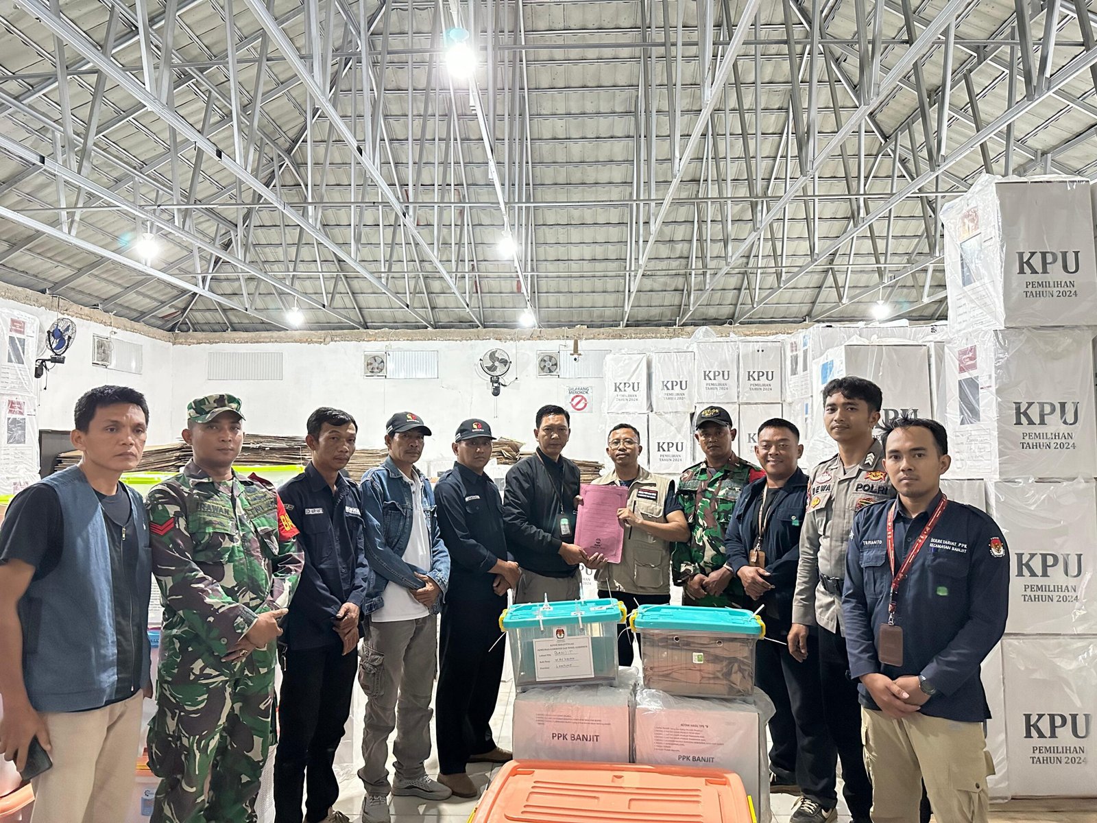 Kegiatan pengamanan dan pengawalan (pam wal) hasil rekapitulasi perhitunguan suara Pilkada 2024 tingkat PPK dihadiri anggota PPK Kecamatan Banjit Riyanto, Ketua Panwascam Banjit Jamsari, personel Banjit, Bripka Tri Wahyu Wijaya dan Brigpol I Dewa Gede Wipra Oka, personel Koramil Banjit Serda Relly Sujatmiko dan Koptu KR. Irawan.