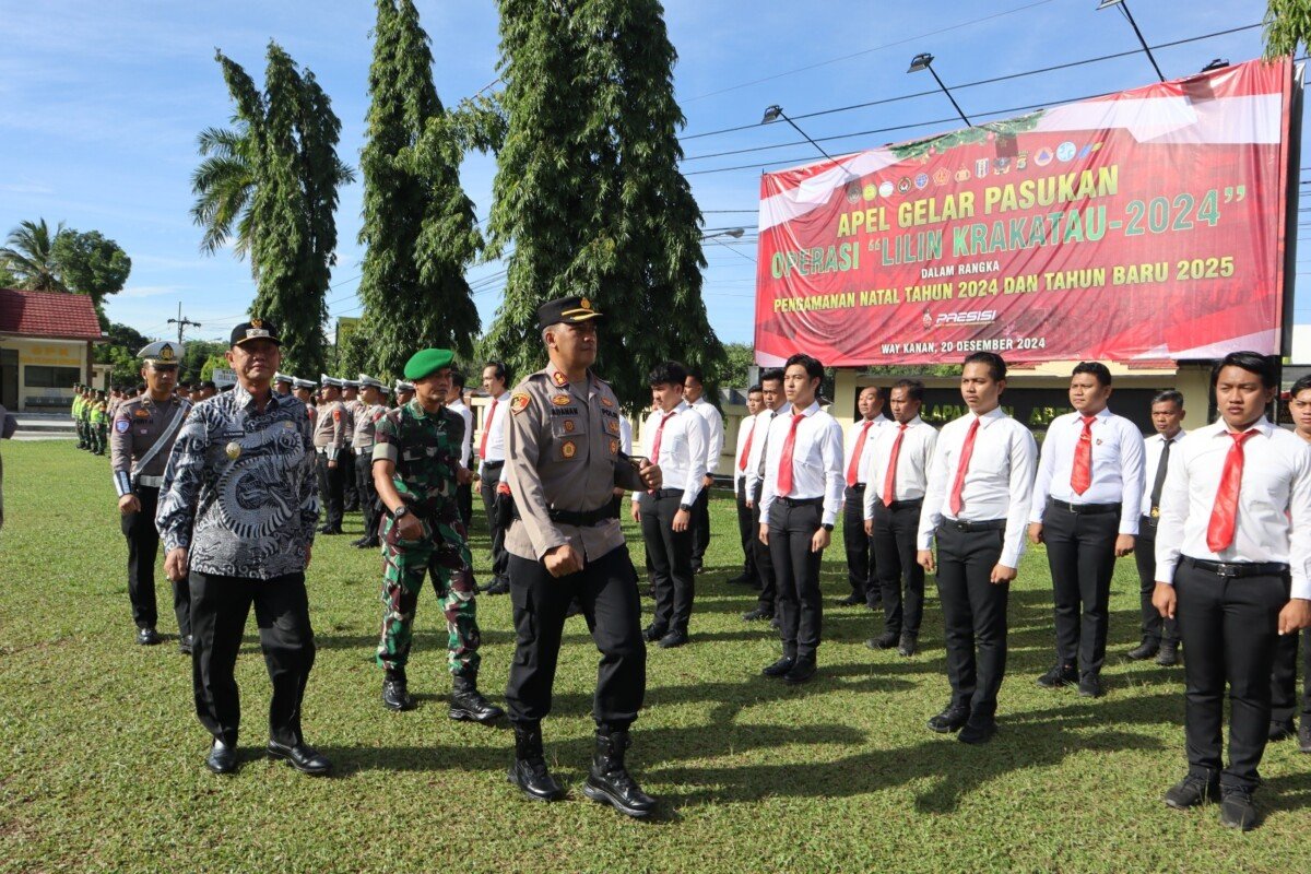 Waykana,Libasnews7.com-Polres Way Kanan Polda Lampung melaksanakan apel gelar pasukan Operasi Lilin Krakatau Tahun 2024 dalam rangka pengamanan Nataru bertempat di Lapangan apel Polres Way Kanan. Jum’at (20/12/2024).