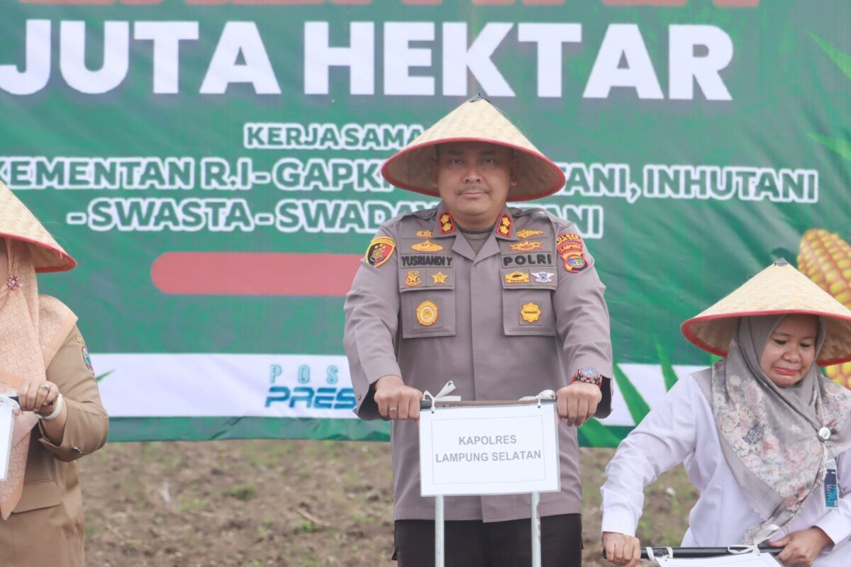 LIBASNEWS7.COM-Lampung Selatan,– Dalam rangka mendukung program Asta Cita Presiden Republik Indonesia, Prabowo Subianto, untuk mencapai swasembada pangan, Polres Lampung Selatan bersama Kodim 0421-LS dan Forkopimda Kabupaten Lampung Selatan telah memulai Gerakan Penanaman Jagung Serentak 1 Juta Hektar. Selasa, 21 Januari 2025.