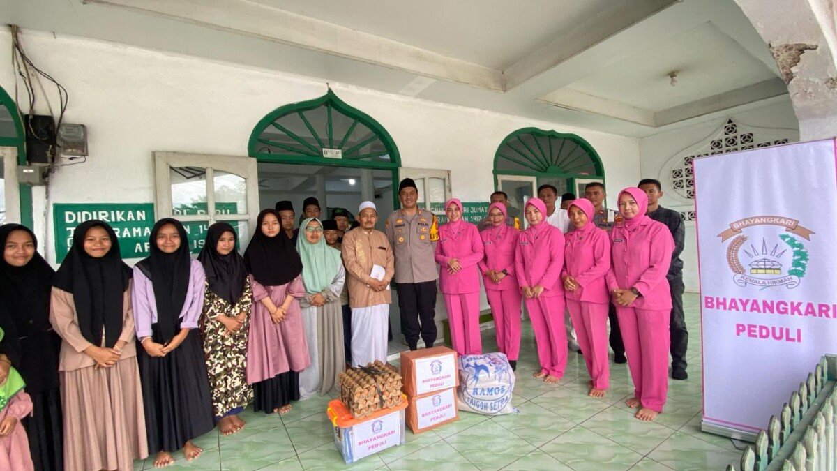 LIBASNEWS7.COM-Kapolres Way Kanan AKBP Adanan Mangopang didampingi ibu Ketua Bhayangkari Cabang Way kanan Ny. Ratna Adanan mengunjungi sekaligus memberikan paket sembako kepada masyarakat di yayasan Miftahul Ikhlas Kampung Negeri Baru Kecamatan Umpu Semenguk Kabupaten Way Kanan. Sabtu(08/03/2025).