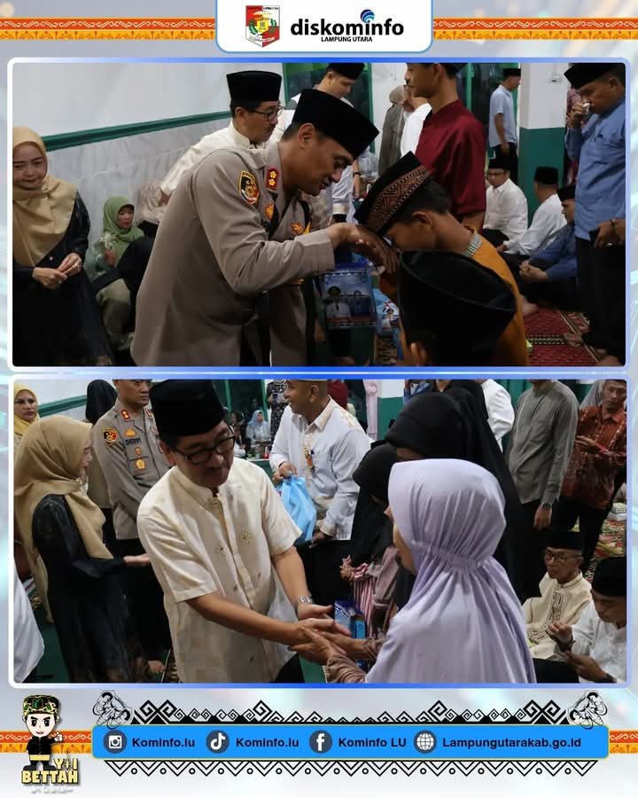 Lampung Utara Libasnew7.Com -Bupati Lampung Utara, Dr. Ir. H. Hamartoni Ahadis, M.Si., bersama Ketua TP-PKK Lampung Utara, drg. Meri Farida Hamartoni, melaksanakan Safari Ramadhan di Masjid Jami’, Desa Aji Kagungan, Kecamatan Abung Kunang, pada Senin, 17 Maret 2025.