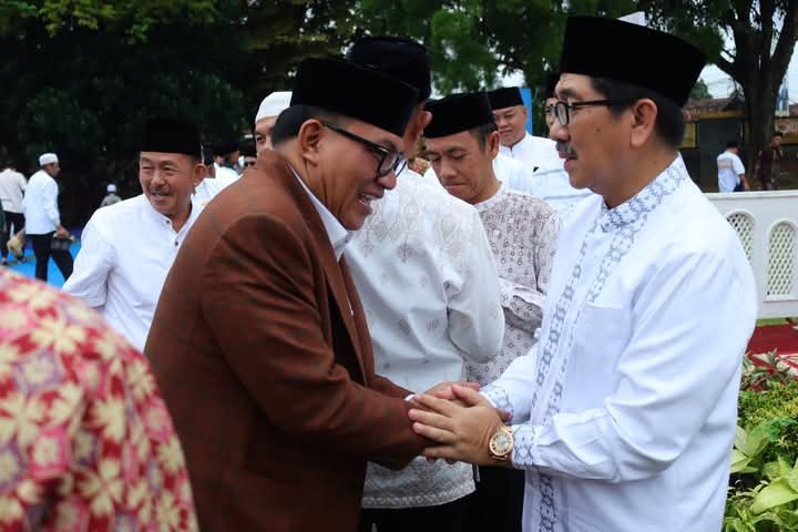 Lampung Utara, Libasnews7.Com. 31 Maret 2025 / 1446 H – Dalam rangka merayakan Hari Raya Idul Fitri 1446 H, Pemerintah Kabupaten Lampung Utara menggelar Sholat Ied berjamaah di halaman Pemda Lampung Utara pada Senin, 31 Maret 2025. Acara berlangsung khidmat dan dihadiri oleh Bupati Lampung Utara, Dr. Ir. H. Hamartoni Ahadis , M.Si., Wakil Bupati Romli, S.Kom., S.H., M.H., jajaran Forkopimda, Kepala OPD dan jajaran serta masyarakat setempat.