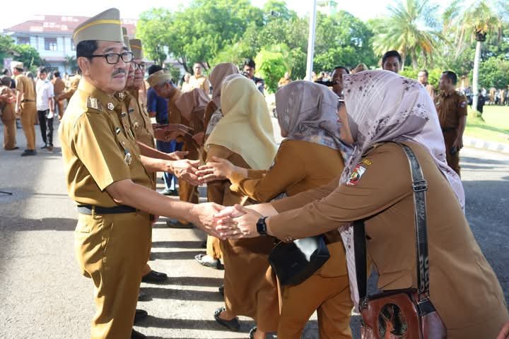 Kegiatan apel bersama ini dirangkaikan dengan Halal Bihalal antara jajaran pimpinan daerah dan seluruh ASN, sebagai wujud kebersamaan dan semangat baru dalam memberikan pelayanan terbaik kepada masyarakat.