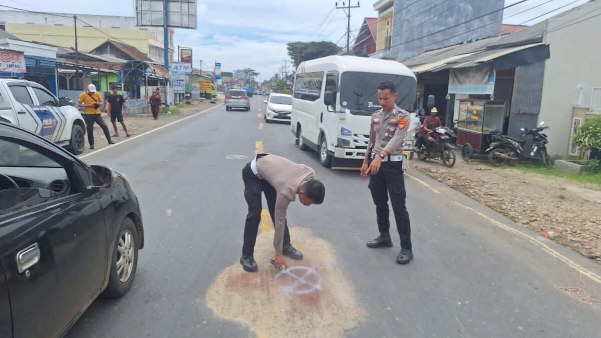 Dan dari arah berlawanan datang Ran Sepeda Motor Honda Beat Warna Putih No Pol BE 3297 WJ yang dikemudikan sdr DF (17) menabrak motor R2 Suzuki shogun warna merah lalu pengendaraan sepeda motor Honda beat warna putih tersebut terjatuh ke kiri jalan. Akibat terjadinya laka lantas tersebut mengakibatkan adanya korban jiwa 1 MD (meninggal dunia) yakni pengendara sepeda motor Suzuki Shogun warna merah an. MW (77) warga Kampung Gedung Pakuan Baradatu, Way Kanan. Dan pengendara sepeda motor Honda beat warna putih mengalami luka lecet ditangan dan kaki.
