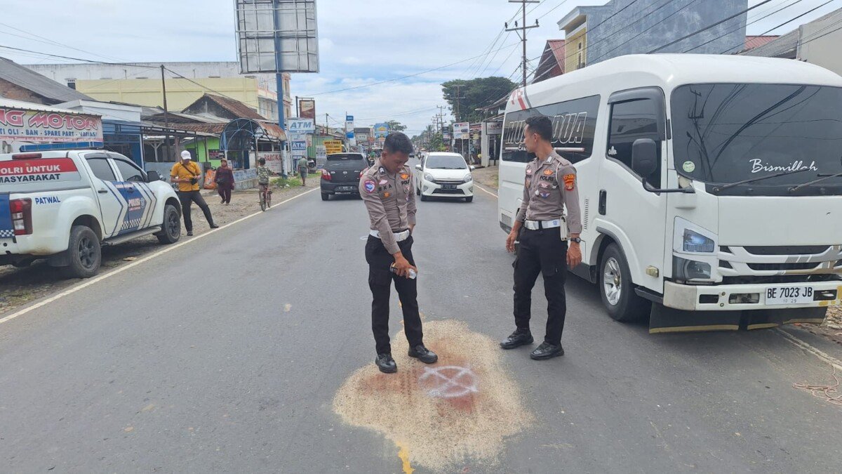Dan dari arah berlawanan datang Ran Sepeda Motor Honda Beat Warna Putih No Pol BE 3297 WJ yang dikemudikan sdr DF (17) menabrak motor R2 Suzuki shogun warna merah lalu pengendaraan sepeda motor Honda beat warna putih tersebut terjatuh ke kiri jalan. Akibat terjadinya laka lantas tersebut mengakibatkan adanya korban jiwa 1 MD (meninggal dunia) yakni pengendara sepeda motor Suzuki Shogun warna merah an. MW (77) warga Kampung Gedung Pakuan Baradatu, Way Kanan. Dan pengendara sepeda motor Honda beat warna putih mengalami luka lecet ditangan dan kaki.