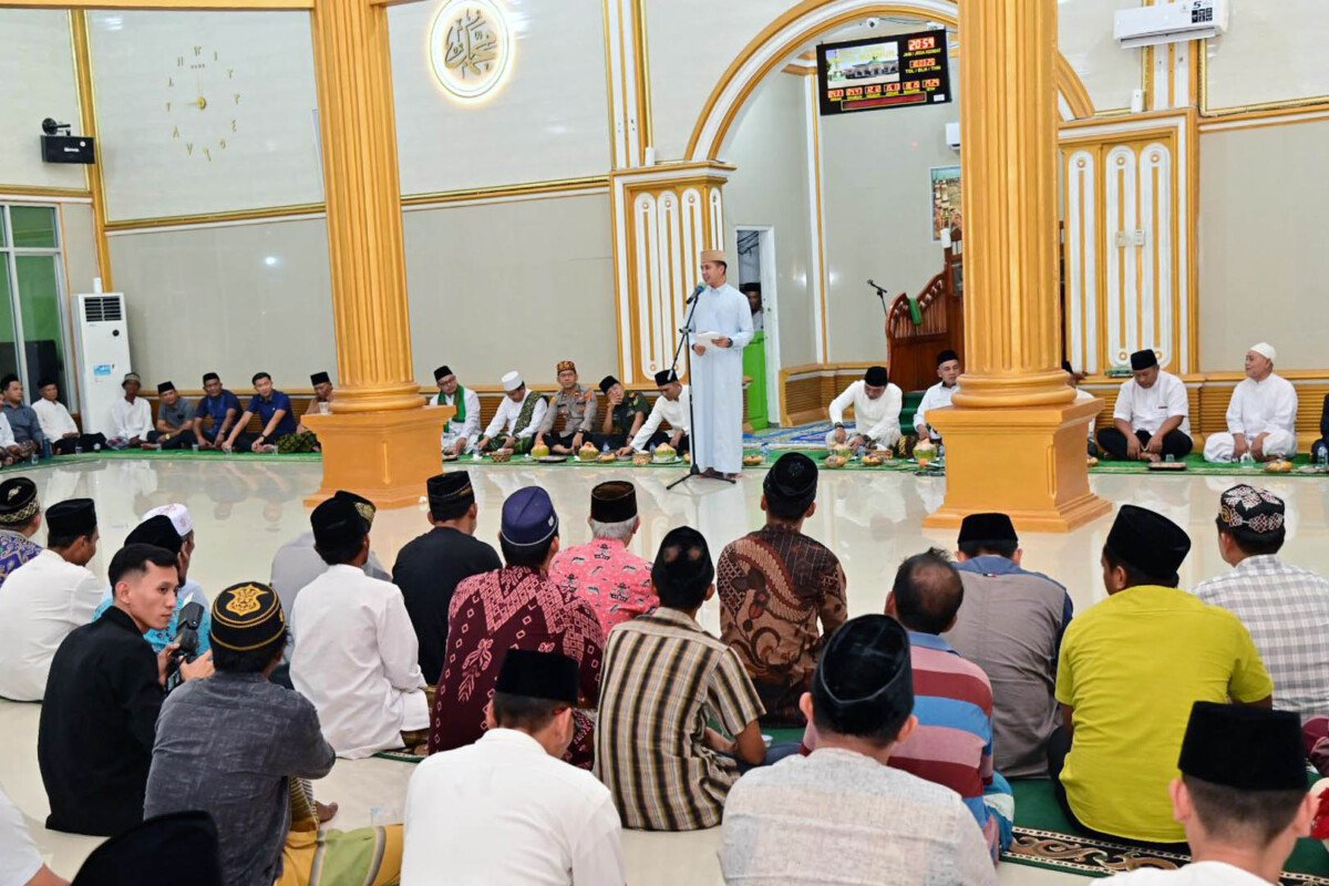 Way Panji – Bupati Lampung Selatan, Radityo Egi Pratama (Egi) bersama Wakil Bupati M. Syaiful Anwar melakukan Safari Ramadan di Masjid Baitul Makmur, Desa Sidoharjo, Kecamatan Way Panji, Senin (10/3/2025).