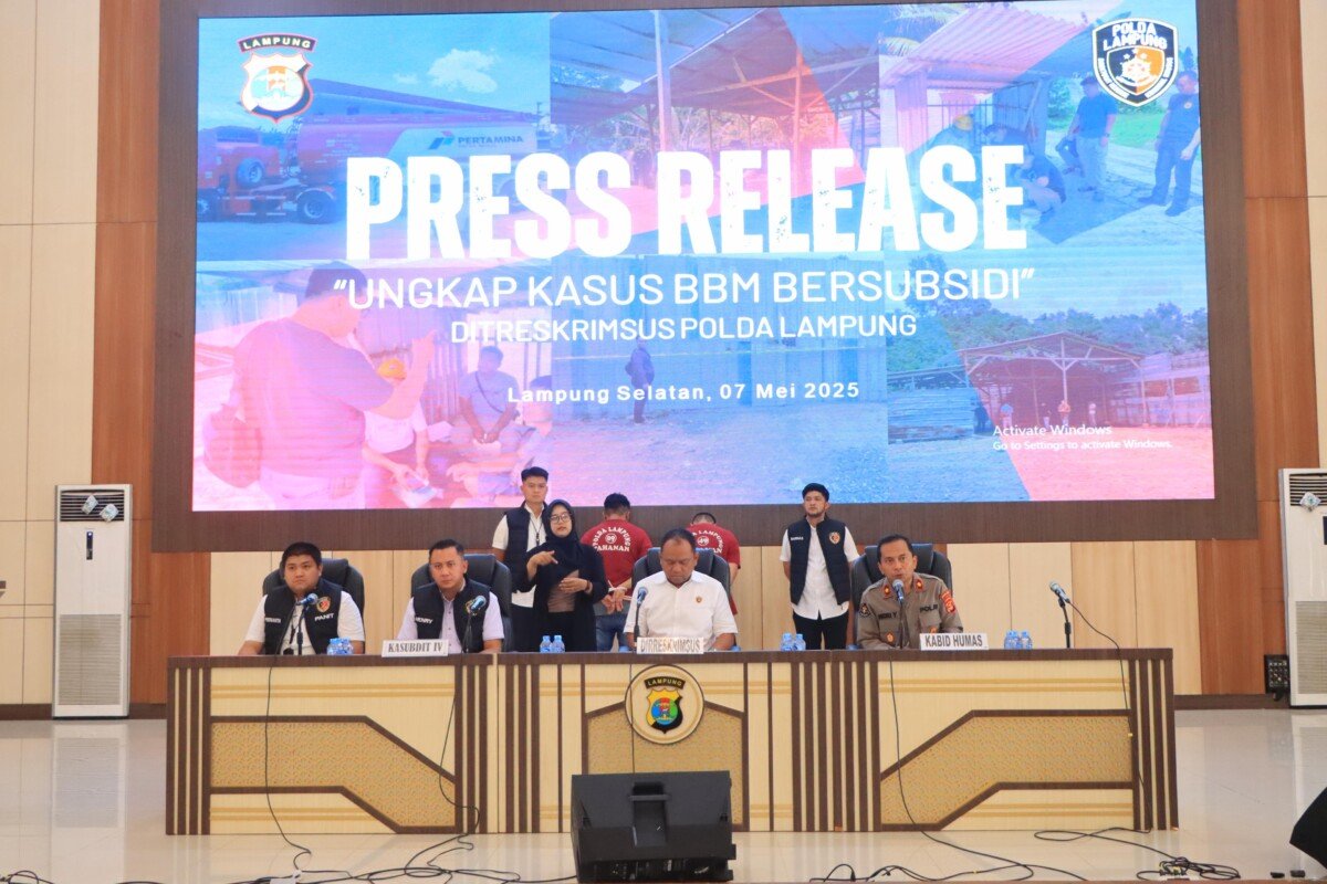 Polda Lampung melalui Ditreskrimsus Polda Lampung kembali ungkap kasus tindak pidana berupa memasukkan atau mencampur bahan bakar minyak BBM jenis pertalite dengan minyak mentah di dua SPBU di Lampung Tengah. Rabu(7/5/25)