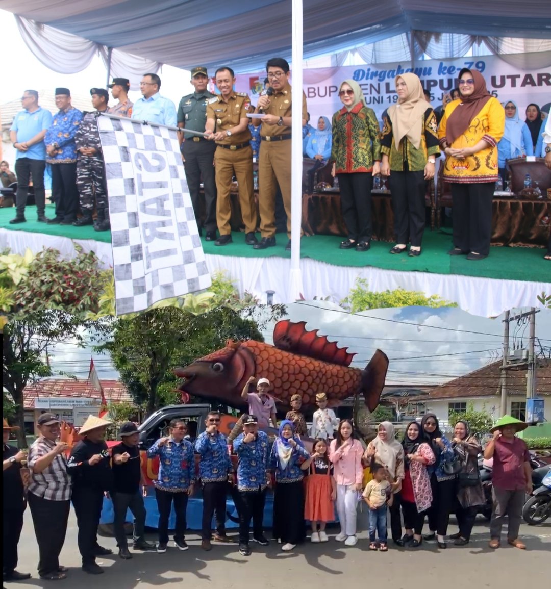 > “Dengan mengucapkan Bismillahirrahmanirrahim, Pawai Budaya dan Lomba Kendaraan Hias HUT ke-79 Kabupaten Lampung Utara saya nyatakan dimulai!”