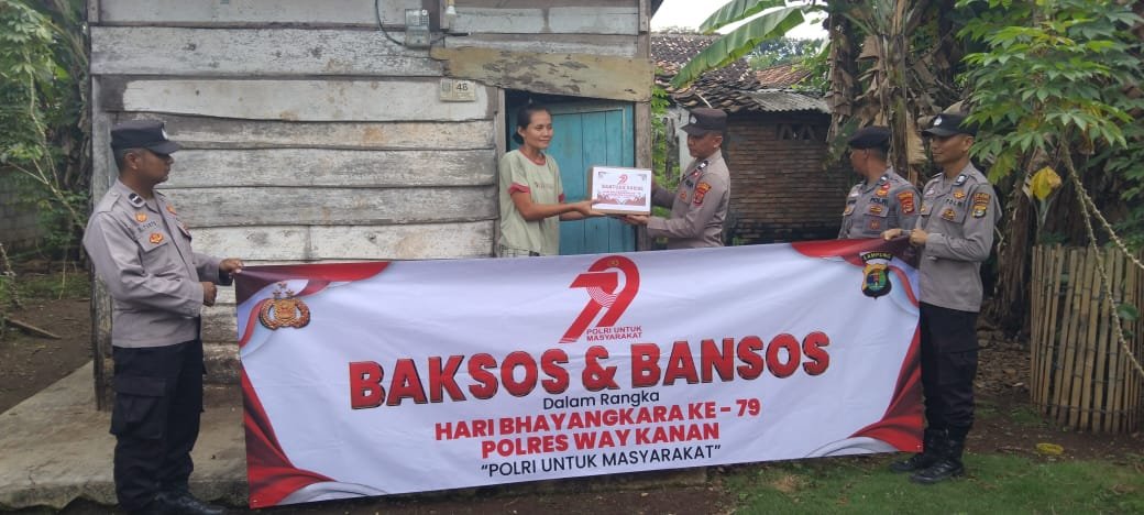 Polsek Kasui Polres Way Kanan melaksanakan kegiatan sambang sekaligus membagikan bansos menjelang Hari Bhayangkara ke 79 di Kelurahan Kasui Pasar dan Kampung Jaya Tinggi Kecamatan Kasui Kabupaten Way Kanan. Kamis (19/06/2025).