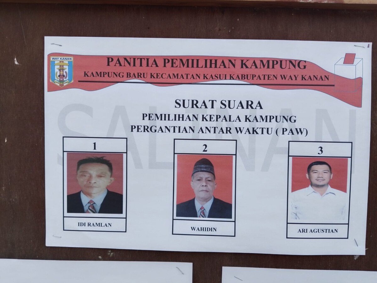 Pergantian Antar Waktu (PAW) di Kampung Baru Kecamatan Kasui di ikuti tiga Kandidat yakni dengan nomor urut satu Idi Ramlan, nomor urut dua Wahidin dan nomor urut tiga Ari Agustian.