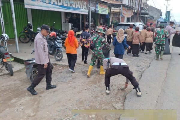 Bersih-Bersih Lingkungan Pasar Polsek Baradatu Gelar Kurve Bersama TNI dan Pelajar