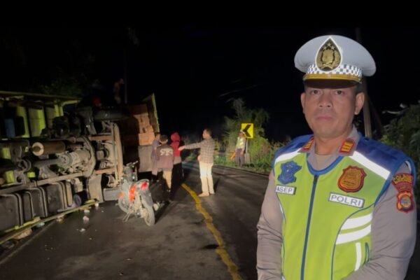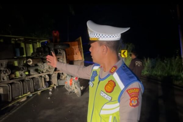 Way Kanan- LIBASNEWS7.COM Unit Laka Lantas Satlantas Polres Way Kanan mendatangi TKP kecelakaan lalu lintas tunggal yang terjadi di Jalan Lintas Tengah Sumatera (Jalinsum) Km.168 Kampung Banjar Masin Kecamatan Baradatu Kabupaten Way Kanan, pada Minggu (11/05/2025) sekitar pukul 21.00 WIB. Pengemudi kendaraan Truck Fuso Merk Hino Warna Hijau Nomor Polisi BG 8368 FN an. Eko…
