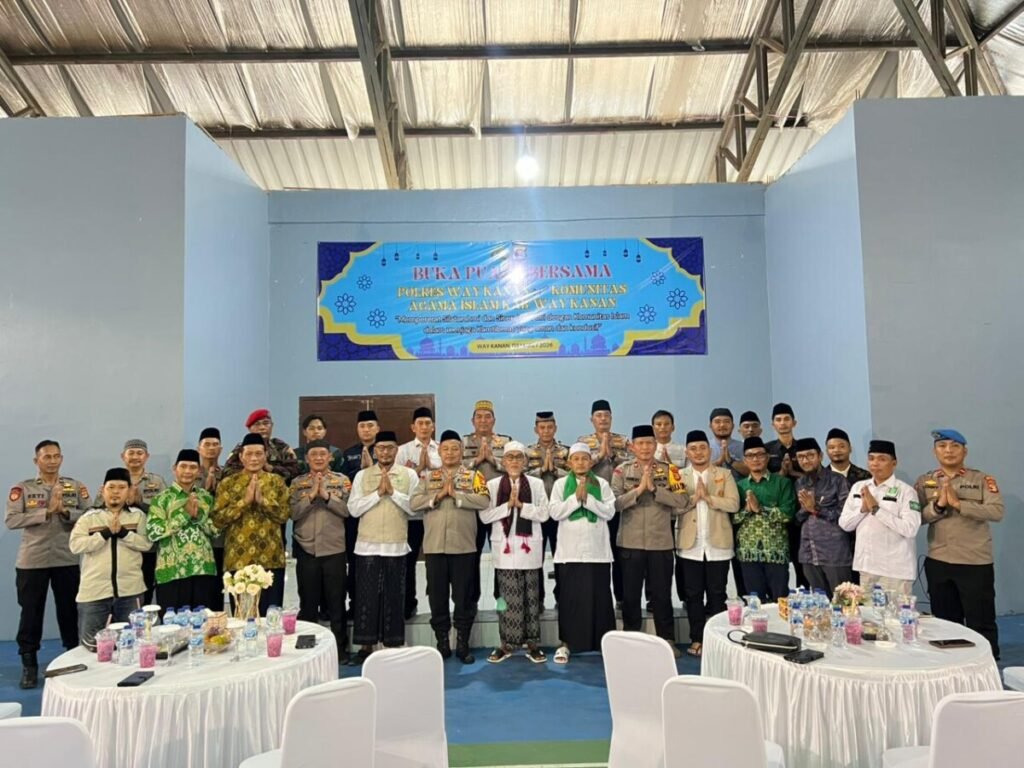 WAYKANAN -LIBASNEWS7. COM Polres Way Kanan Polda Lampung menggelar kegiatan buka puasa bersama Komunitas Agama Islam dalam rangka Bulan Suci Ramadhan 1447 H/2026 M sebagai wujud kebersamaan dan sinergi dalam menjaga situasi kamtibmas tetap aman dan kondusif di wilayah Kabupaten Way Kanan. Rabu (4/3/2026). Kegiatan buka puasa bersama berlangsung di GSG Lupegha Polres Way Kanan…