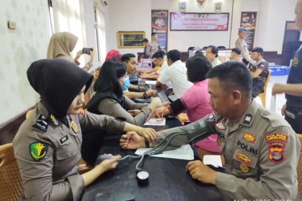 Lampung Utara – LIBASNEWS7.COM Dalam rangka memperingati Hari Bhayangkara ke-79 tahun 2025 yang jatuh pada 1 Juli mendatang, Polres Lampung Utara menyelenggarakan kegiatan bakti kesehatan berupa donor darah pada Senin (16/6/25). Acara ini digelar di Aula Rekonfu mapolres setempat dan diikuti oleh Pejabat Utama, ratusan anggota dan Bhayangkari Polres Lampung Utara. Kapolres Lampung Utara melalui…